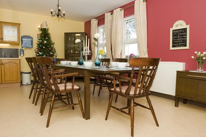 - Clear signs on lounges and day rooms with age appropriate furnishings and emphasis on colour contrast. Dining rooms with homely furnishings e.g. dining room table, side-board, dressers.